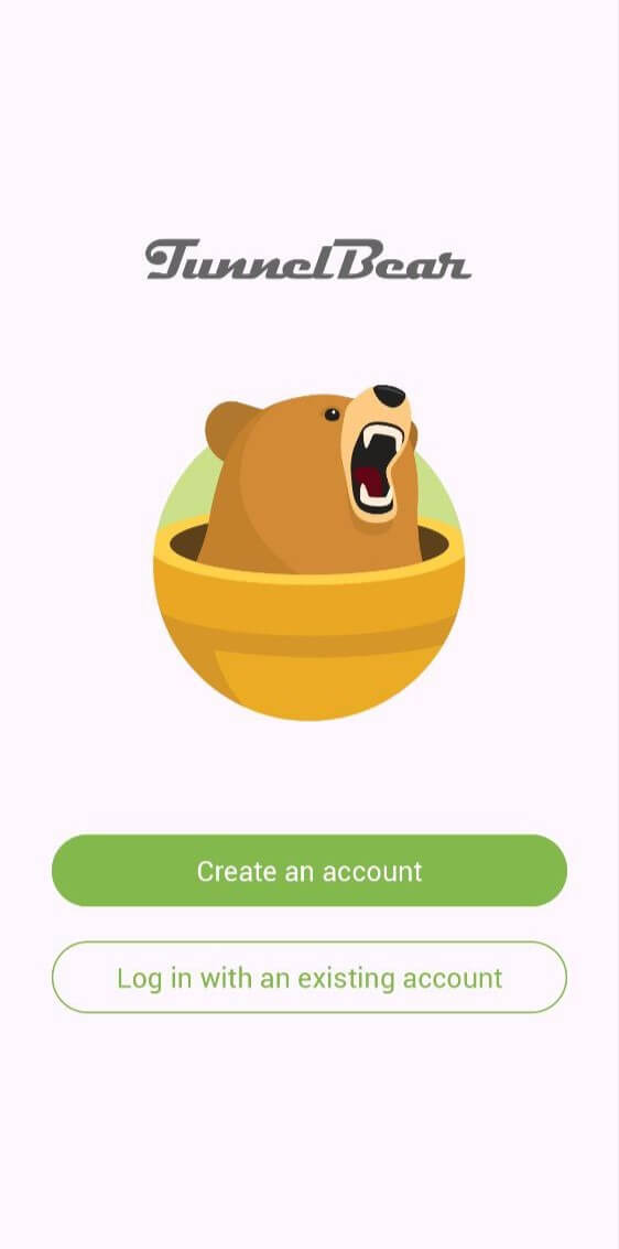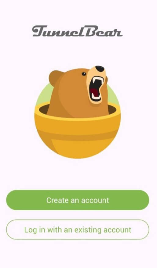 Инсталлируйте TunnelBear, иконка появится на главном экране. Запустите его, вы увидите приглашение создать аккаунт или войти в уже существующую учётную запись.