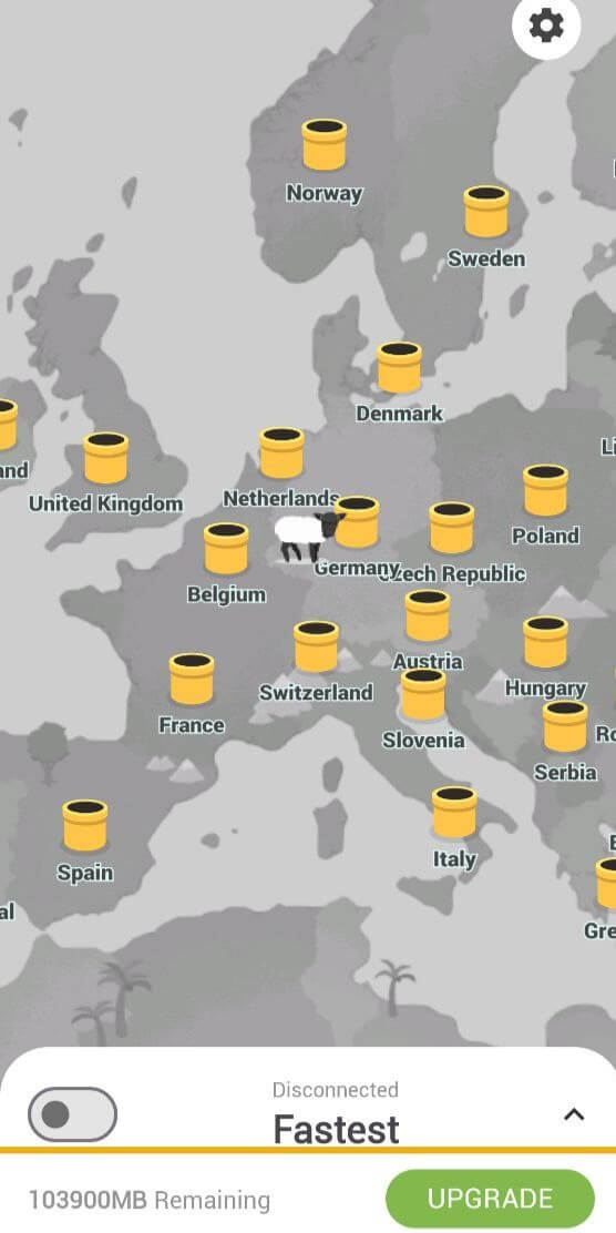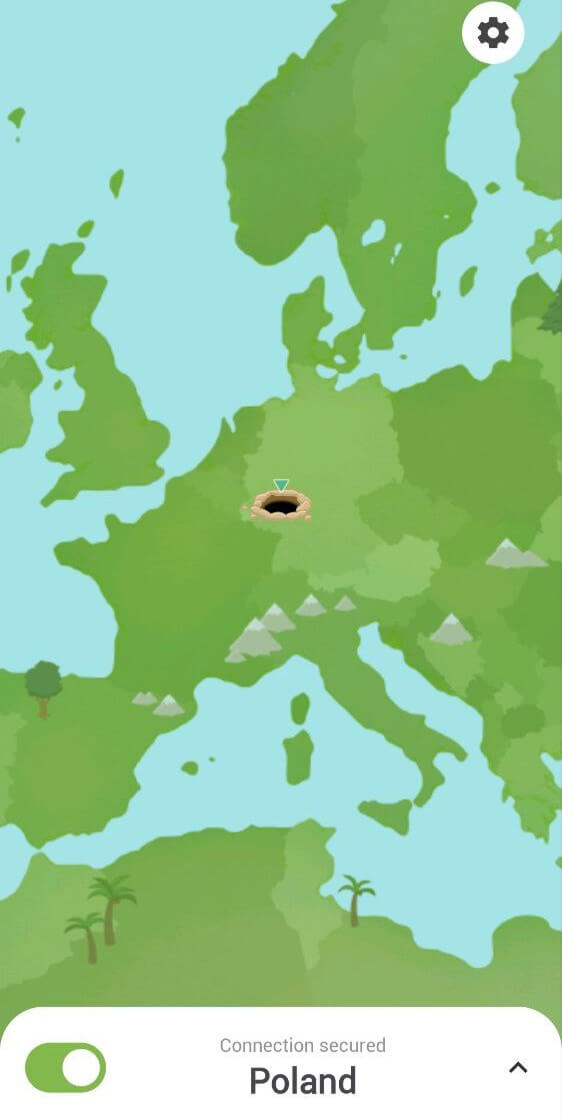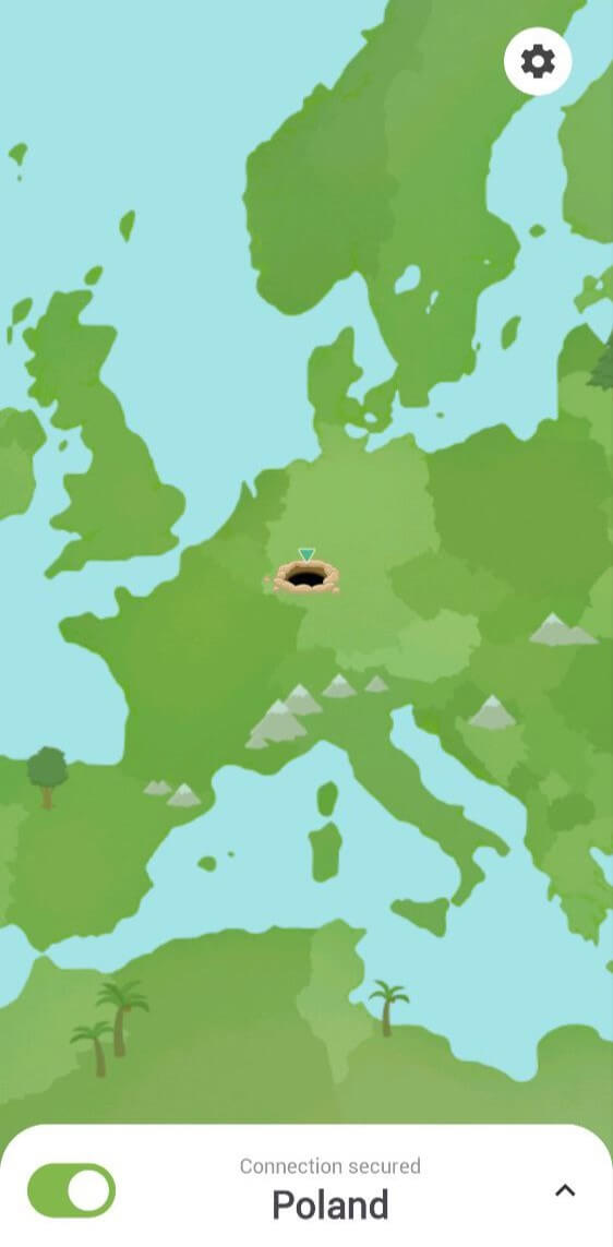 Нажмите на изображение берлоги для подключения к нужной стране. Если эта процедура пройдёт успешно, карта станет цветной, а в нижней части вы обнаружите название страны подключения. Для отключения сдвиньте ползунок влево.