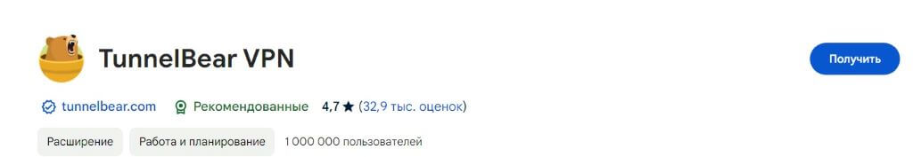 TunnelBear поддерживает установку браузерных расширений на основные приложения и их форки (например, Vivaldi на основе Firefox). Установка расширения возможна двумя способами: ручным поиском через магазин расширений или же через сайт tunnelbear.com. Обратите внимание, что в России этот сайт заблокирован и для доступа к нему необходимо включить сторонний VPN-сервис.
